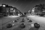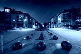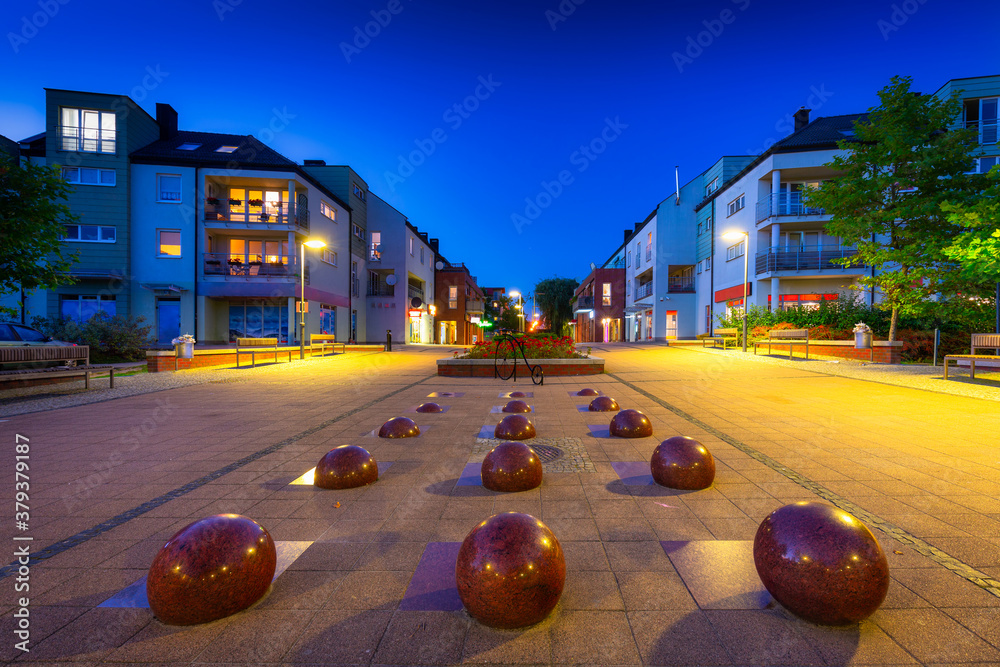 Scenery of city center in Pruszcz Gdanski at night, Poland.