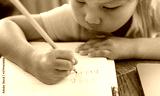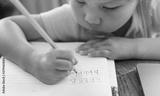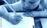 A young child learning how to write letters and alphabets, pencil and paper. School work.
