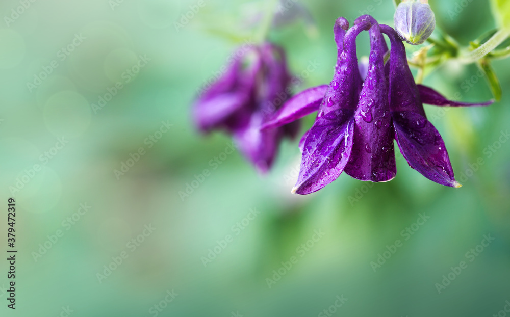 Selective focus of purple of Aquilegia vulgaris in the garden.