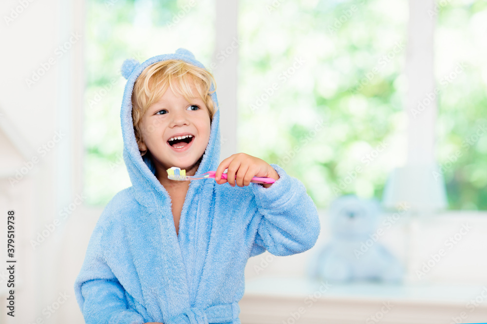 Child brushing teeth. Kids tooth brush.