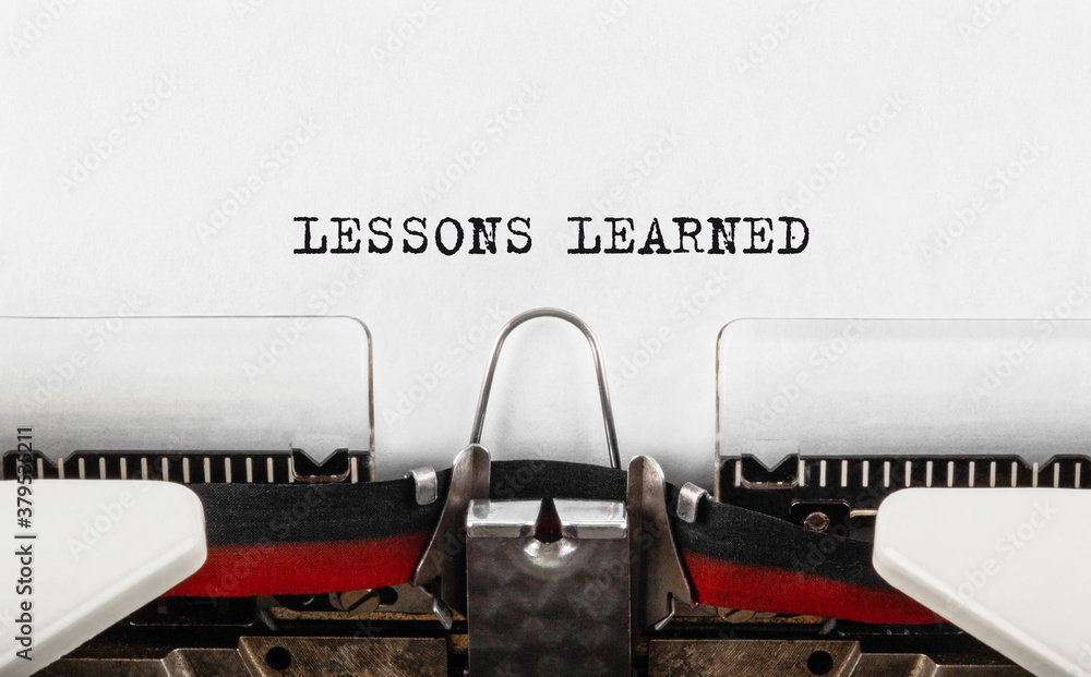 Text LESSONS LEARNED typed on typewriter