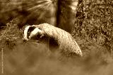 Side view of posing European Badger in the forest, animal in nature habitat closeup.