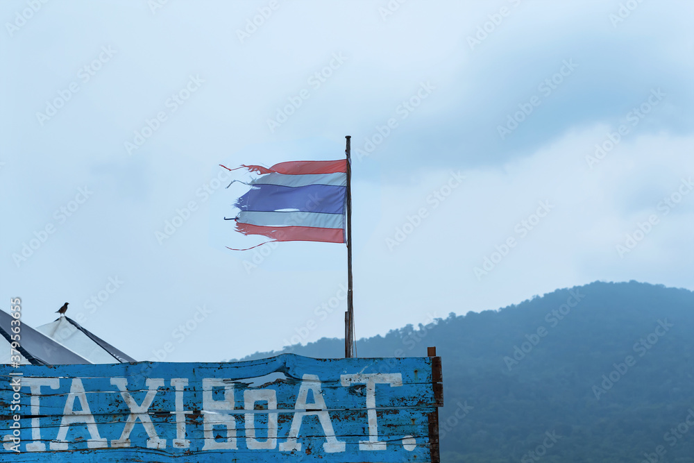 The Thai flag fluttering in the wind