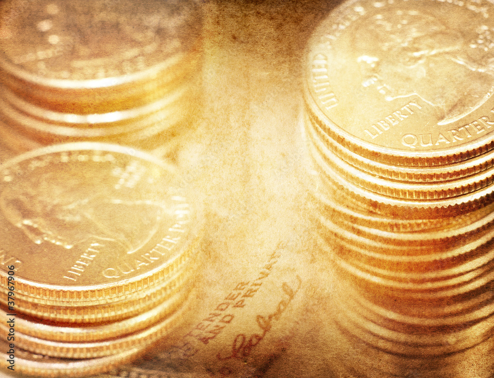 Old coins on grunge background
