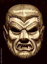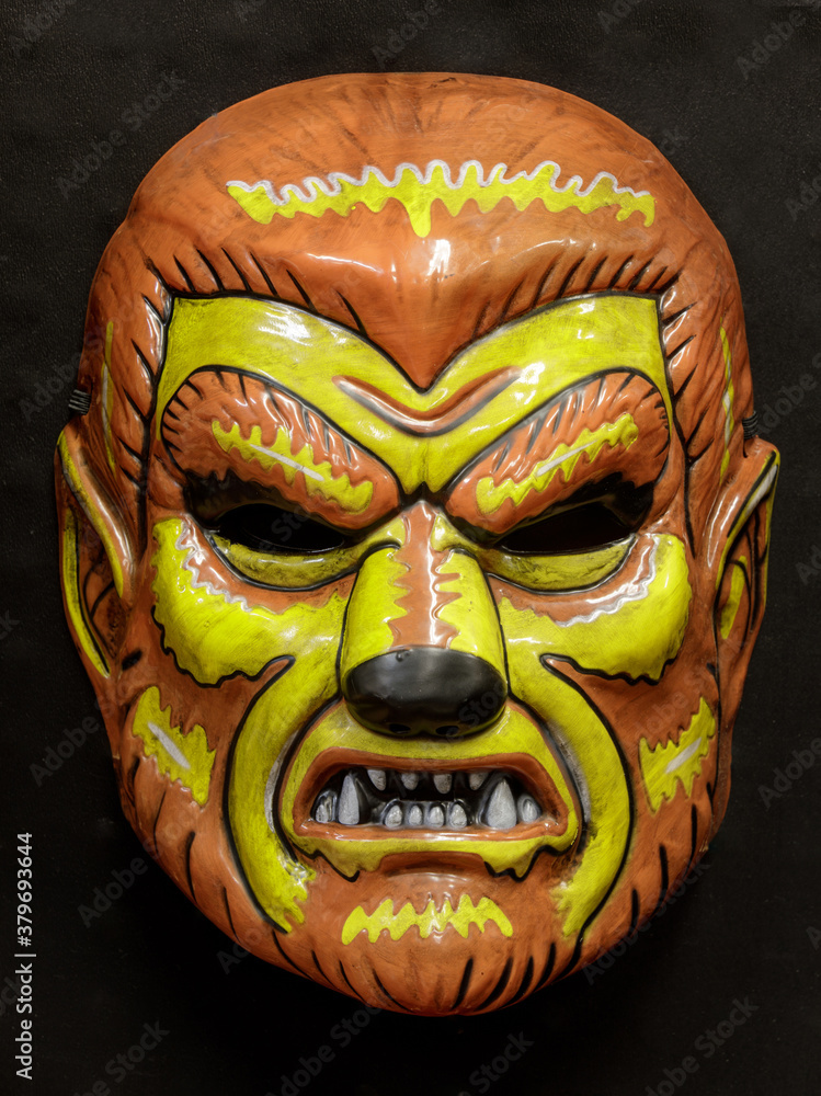 Vintage Werewolf Face Mask Isolated Against Black Background