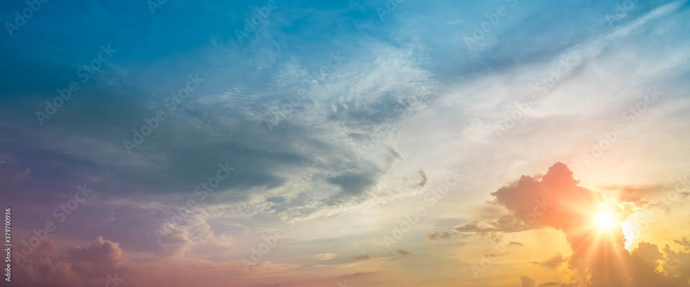 Background of colorful sky.blurry sky panorama.Panoramic shot of a beautiful cloudy sky and sunset.