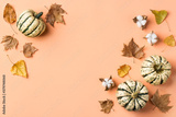 Autumn fall thanksgiving day composition with decorative pumpkins
