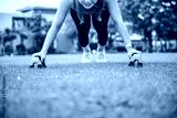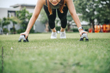 Fitness training outdoor, Healthy lifestyle concept Closeup - Sport woman doing push ups in the park.
