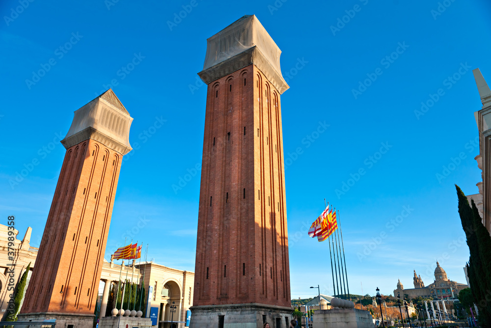 View of the Venetian Tower on Espanya square, Barcelona. Spain.