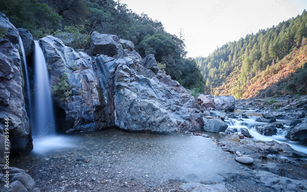 NEVADA CITY, CALIFORNIA, UNITED STATES - Jul 31, 2018: A waterfall along the South Yuba River