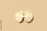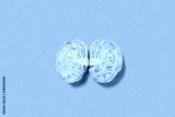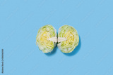 two halves of a cut head of iceberg lettuce on a blue background in the form of light