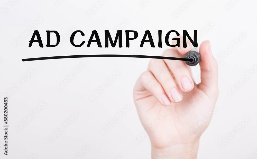 Hand writing Ad Campaign with black marker on transparent wipe board