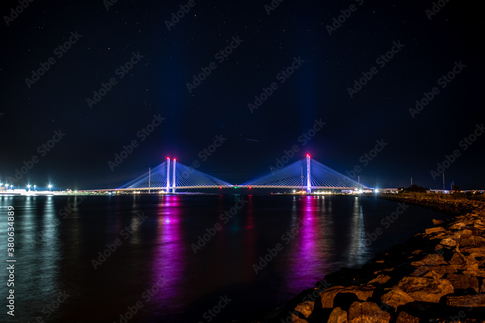 The Indian River Inlet Bridge on the last day of Summer 2020. If you look closely there is a small shooting star between the bridge spans. A cable-stayed bridge located in Sussex County, Delaware.