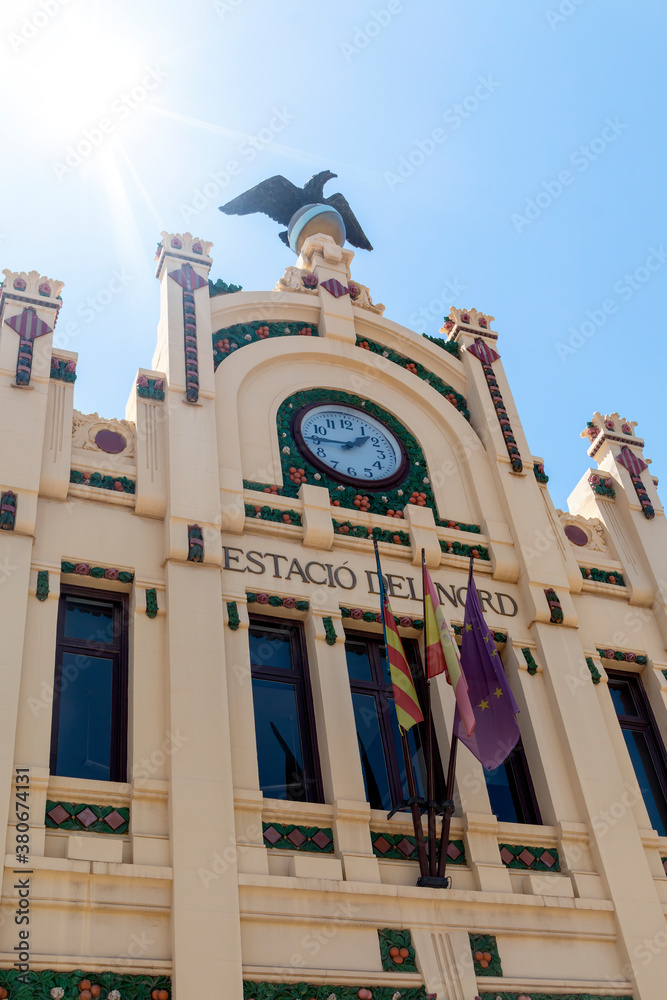 Main facade of the train station 'Stació del Nord' (North Station), in Valencia, Spain
