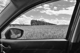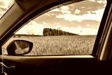 view of the wheat field in the car window