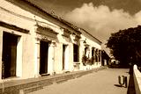 Typical historic houses in warm afternoon light, trees and river, Santa Cruz de Mompox, Colombia, World Heritage"