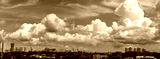 Panoramic landscape of city skyline with beautiful white clouds and blue sky