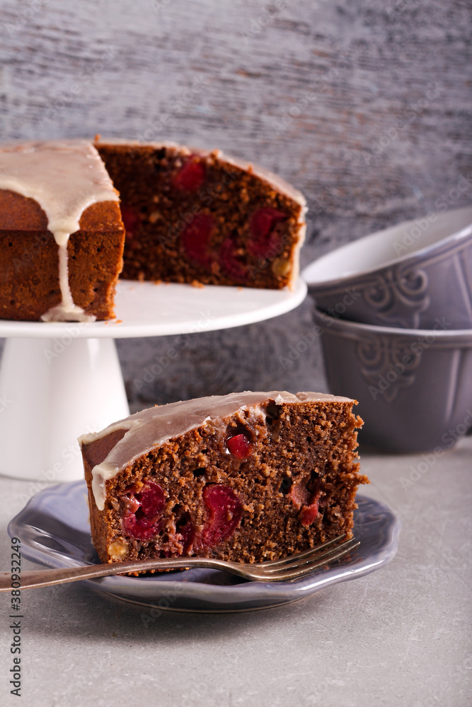 Chocolate nutty cake with cherry