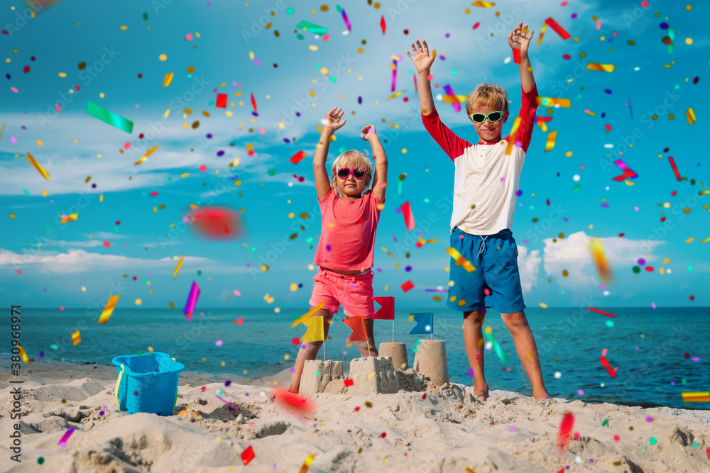 happy boy and girl celebration on beach