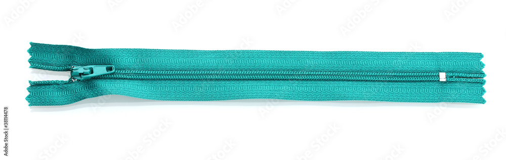 Green zipper isolated on white