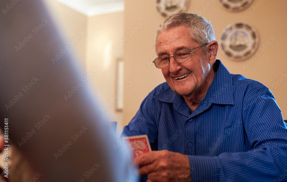 Senior Couple At Home Sitting At Table Playing Cards Together