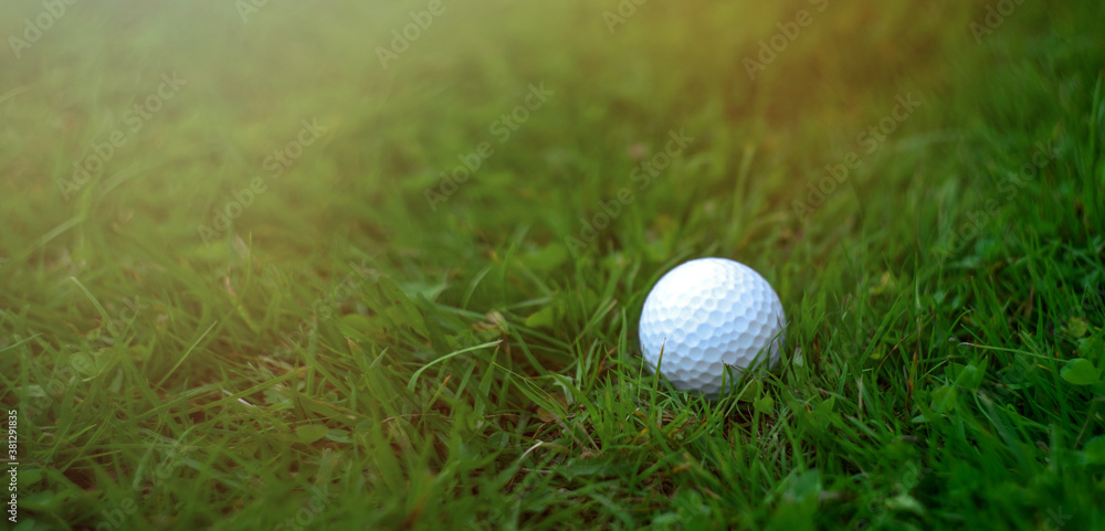 Golf ball on green grass, place for inscription