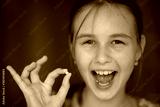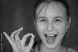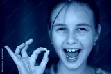 Girl looking at extracted milk tooth with caries - bad oral hygiene concept