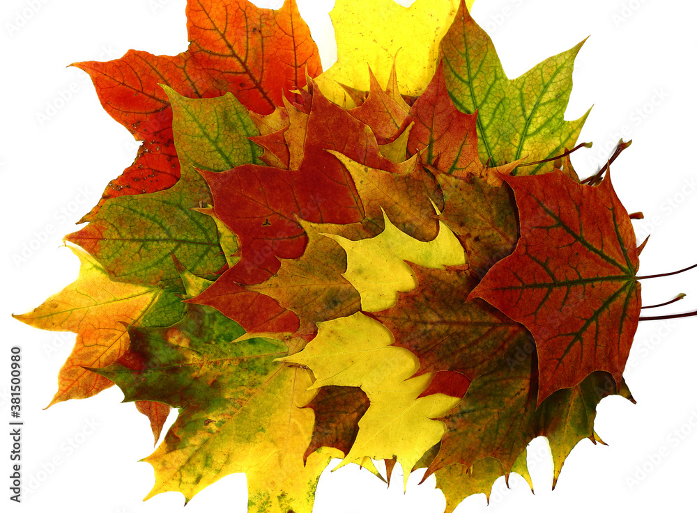 Composition of several maple leaves of different colors. Close-up. Natural color.