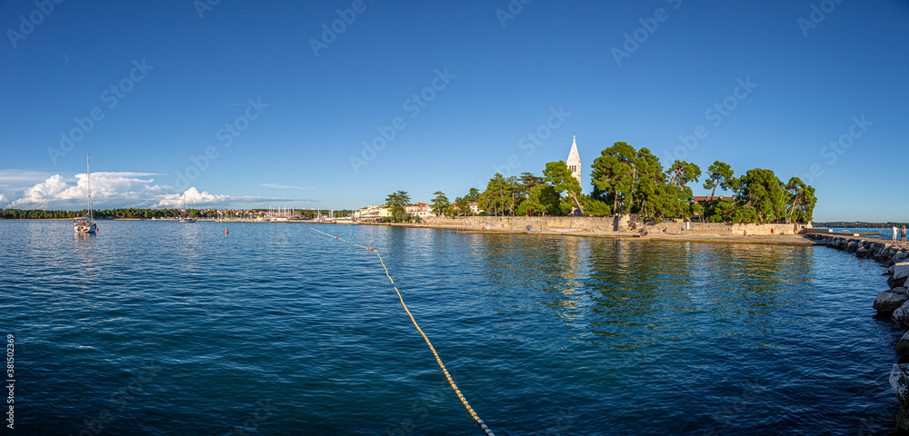 Panoramic picture of the Novigrad shoreline in Croatia during daytime
