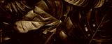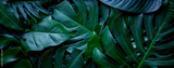 closeup nature view of tropical green monstera leaf background. Flat lay, fresh wallpaper banner concept
