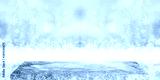 Empty marble stone table with backdrop blurred winter forest Bokeh background, Can be used for display your product
