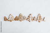 Tasty minimalist homemade gingerbread christmas tree cookies with icing