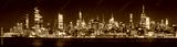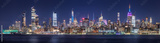 New York CIty panoramic cityscape of Midtown West skyscrapers at night along Hudson River Park. Manhattan, NY, USA