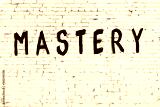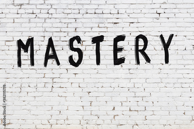 Inscription mastery painted on white brick wall