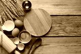 kitchen utensils for cooking on the wooden table, food prepare concept