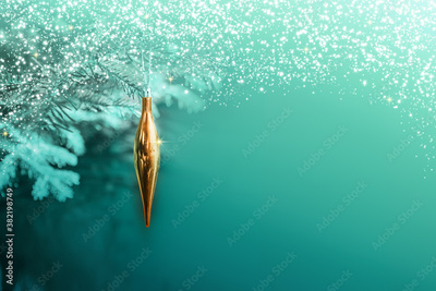 Golden Christmas icicle isolated on green background.