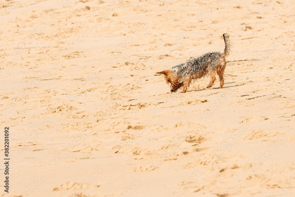 Yorkshire terrier on beach
