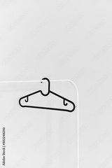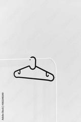 Black empty plastic hanger on the white rack isolated at the white background