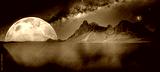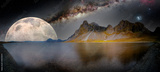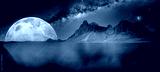 fantastic night landscape with lake, mountains and moon. Elements of this image furnished by NASA.