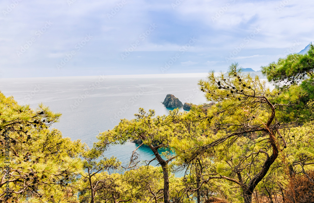 Turquoise Coast with pine trees and Mediterranean Sea
