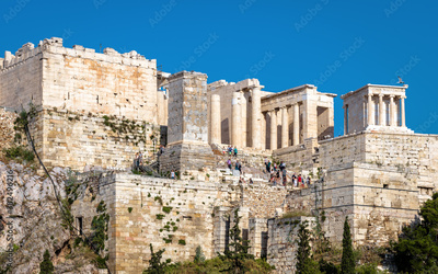 Acropolis of Athens close-up, view of ancient Propylaea, Greece.