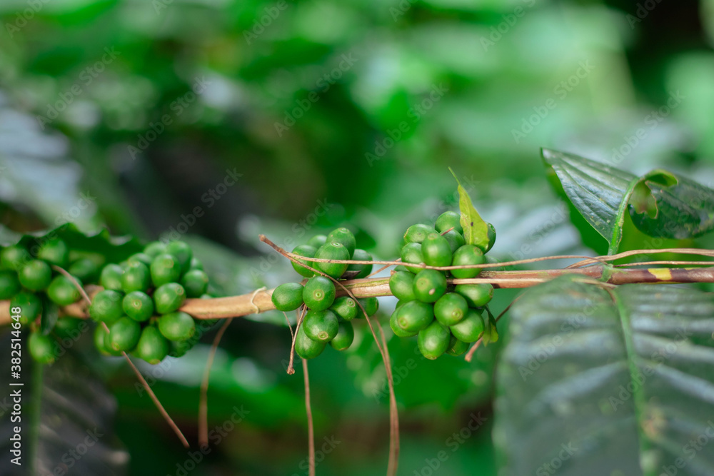 Cherry coffee that is currently producing but not yet ripe is being green