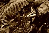 Attractive young woman among the tropical plants. Vacation. Tropics. Fashion shot.