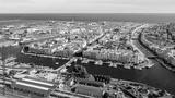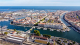 Aerial view of the old town center of Sete in the South of France - Two urbanised islands surrounded with ancient canals between the Mediterranean Sea and the Pond of Thau