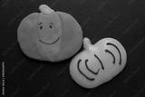 Pumpkin cookie on black wooden background, Halloween sweet and handmade decoration