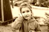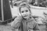 A little girl in a pink hoodie with a sad and tearful face is holding her ear. Ear pain, otitis media, swelling of the cheek, gums, toothache, children's surgery, otolaryngology. Children's medicine