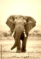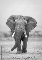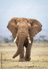 Vertical portrait of a large elephant bull walking towards camera in Amboseli National Park in Kenya