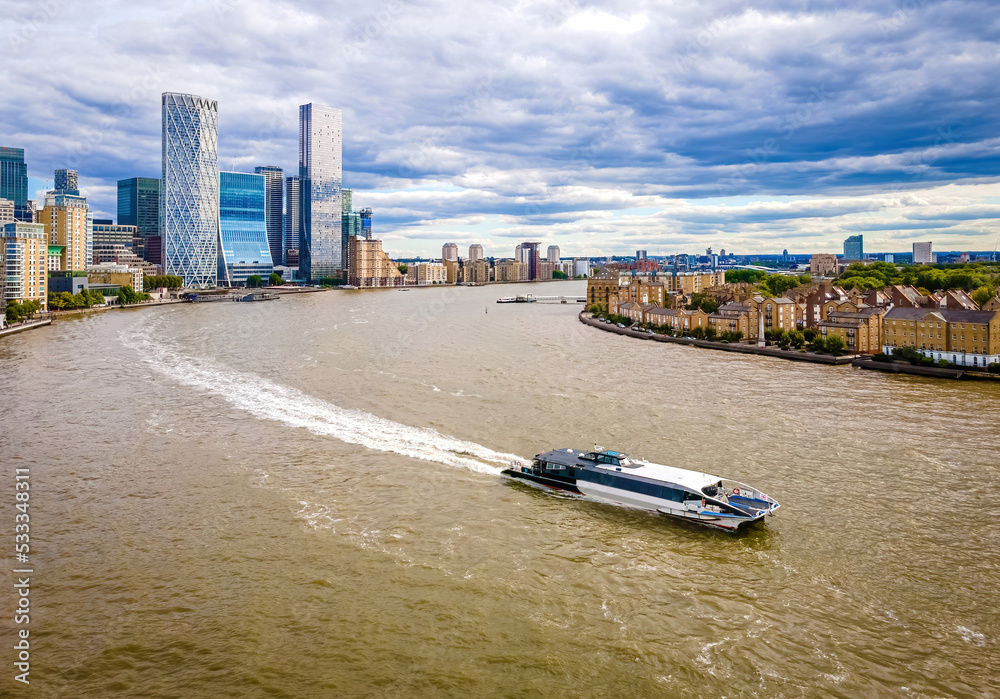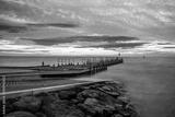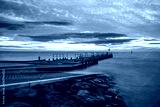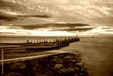 Scenic sunset over ocean and boat jetty - long exposure landscape