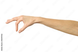 Hand picking, holding, grabbing or reaching. Woman hand gesturing isolated on white