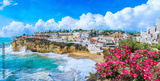 Carvoeiro town with colorful houses and yellow sand beach in Algarve, Portugal